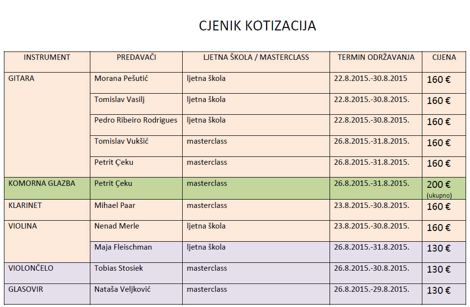 14. međunarodna ljetna škola mladih glazbenika | 14th International Young Musicians' Summer Class